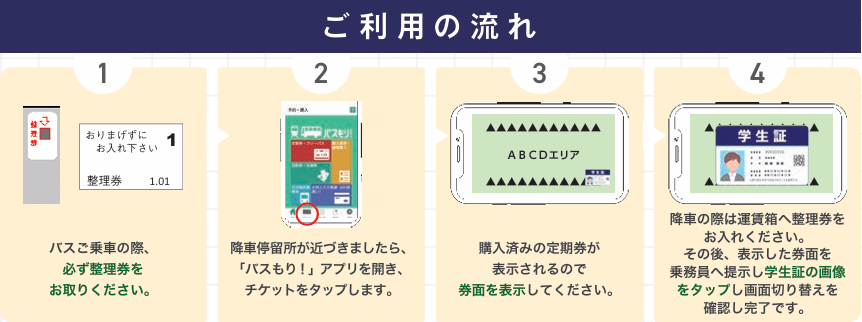 ・「バスもり!」アプリをダウンロードし会員登録を行ってください。アプリのインストールはこちら。