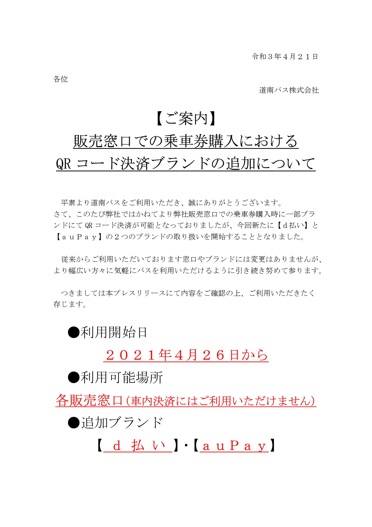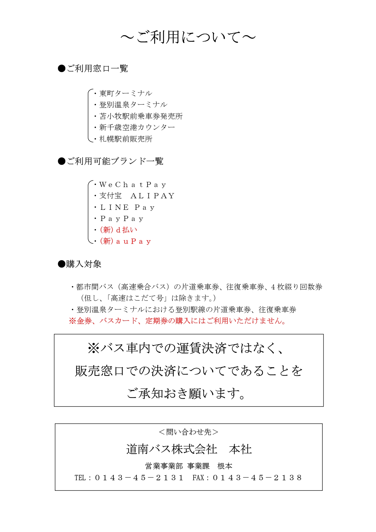 表記につきまして、弊社管轄の販売窓口での乗車券購入時にご利用いただいておりましたQRコード決済について、