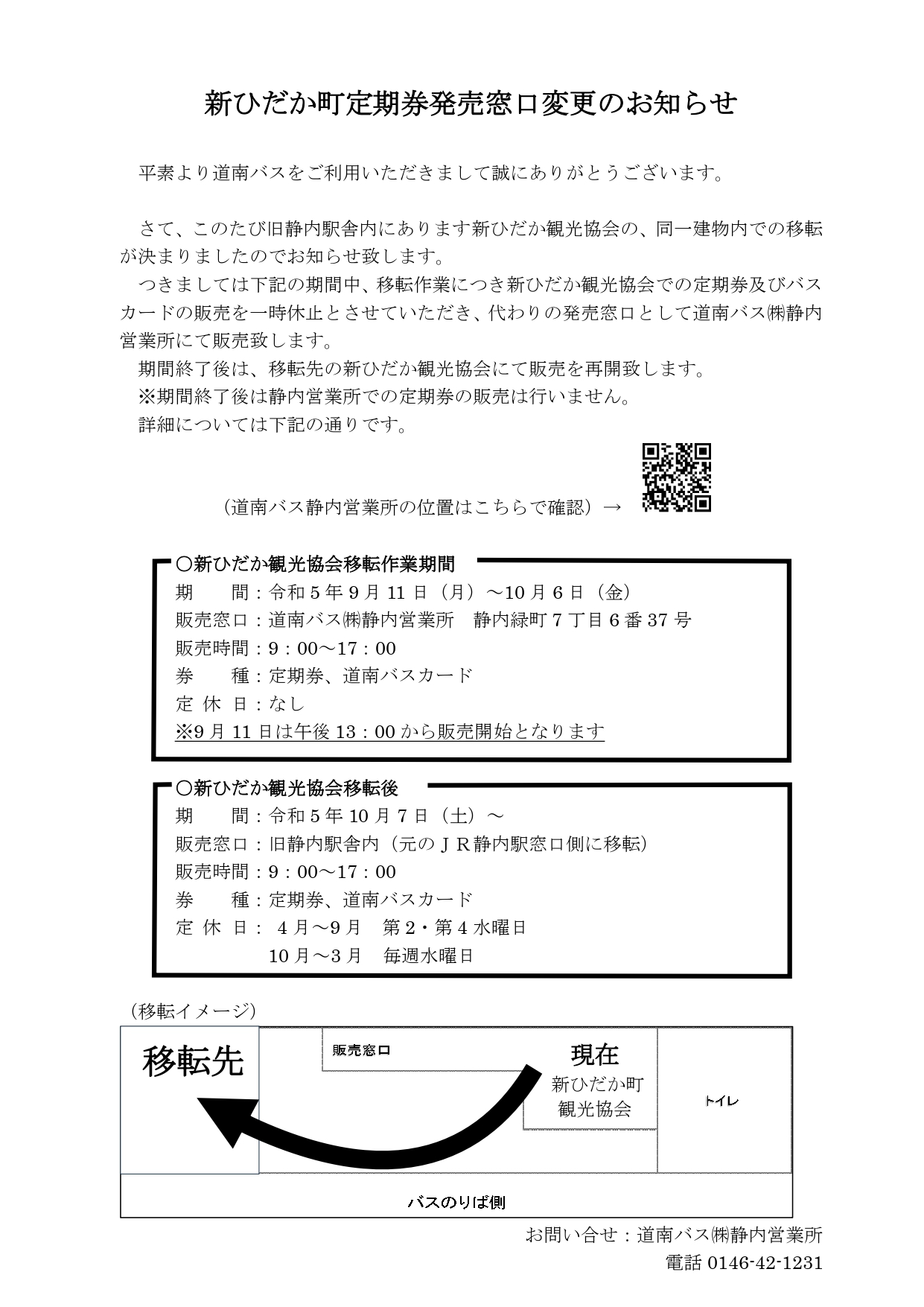 新ひだか町定期券発売窓口変更のお知らせ