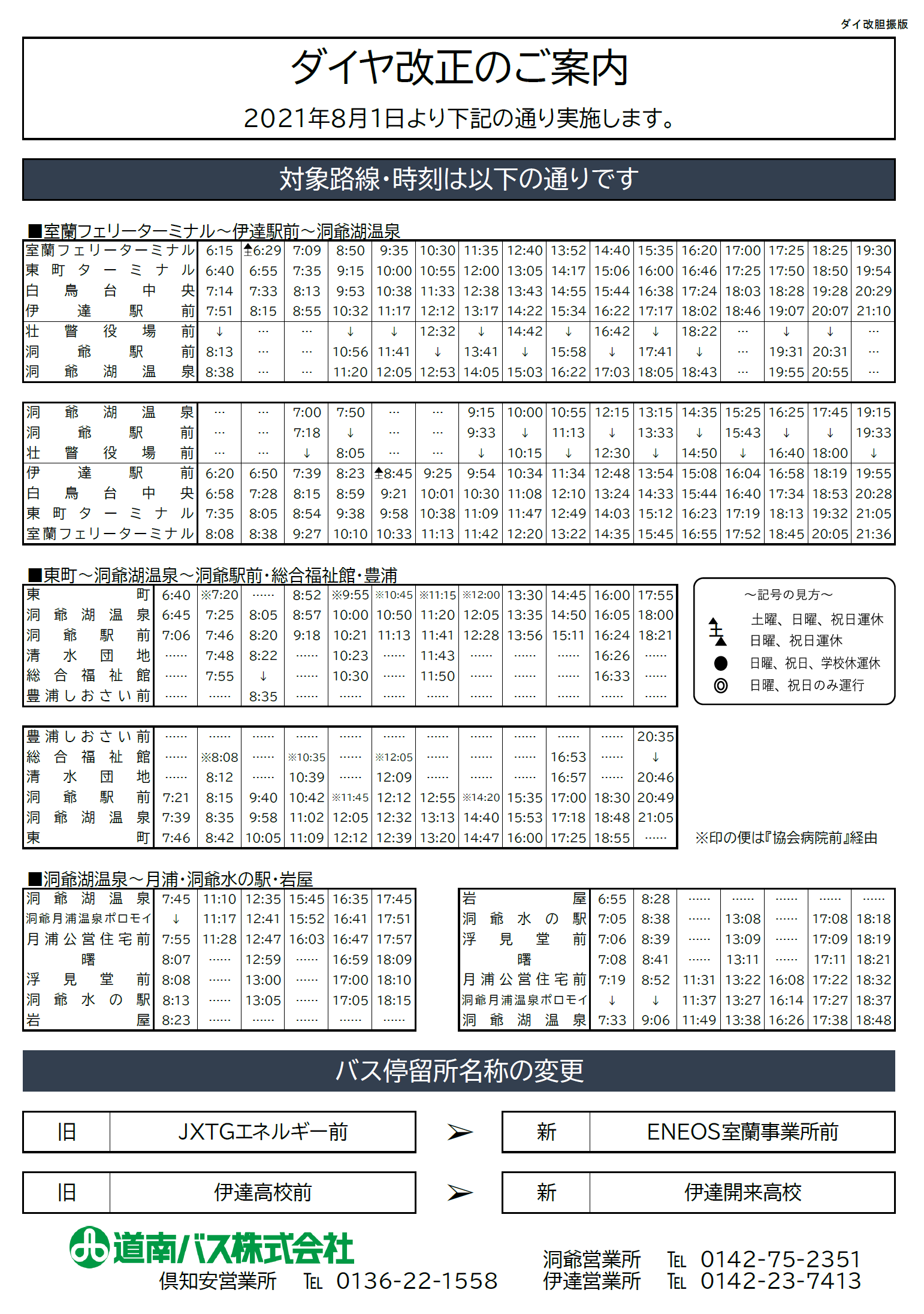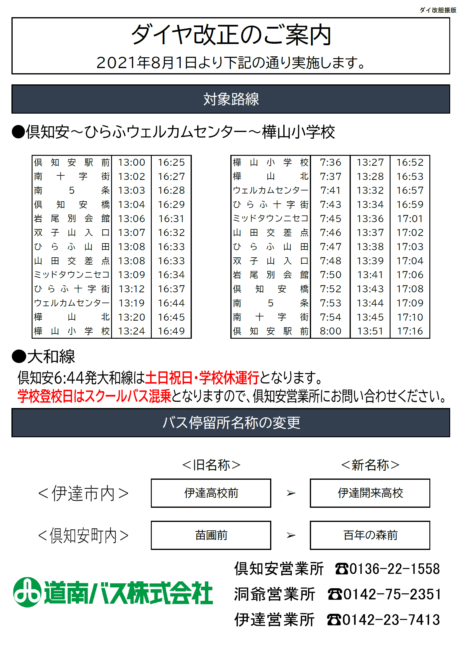 2021.8.1 洞爺・伊達・倶知安管内ダイヤ改正について
