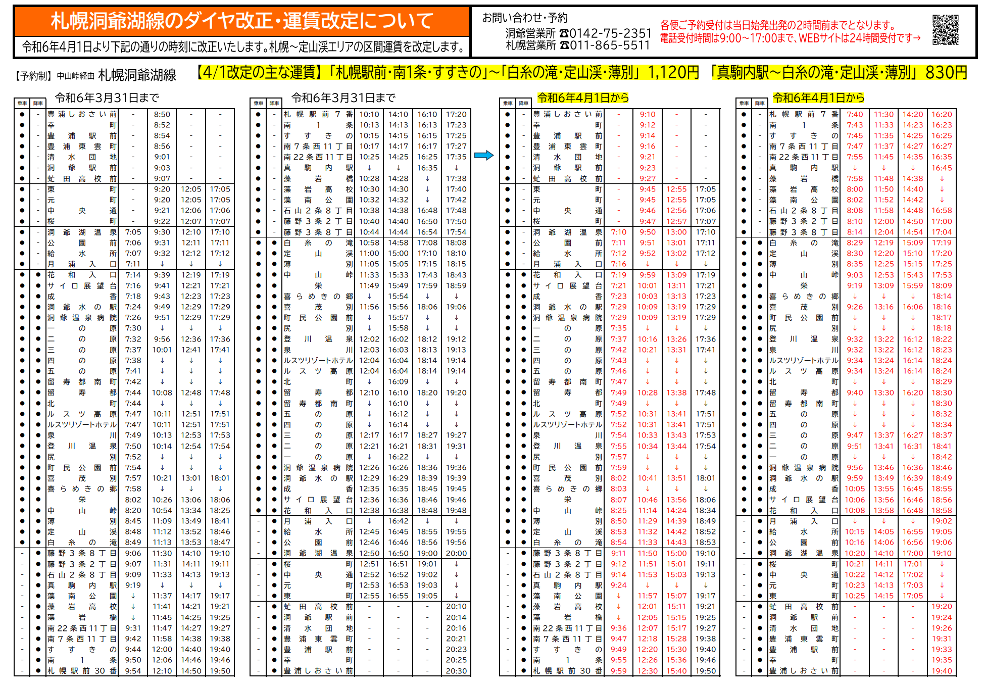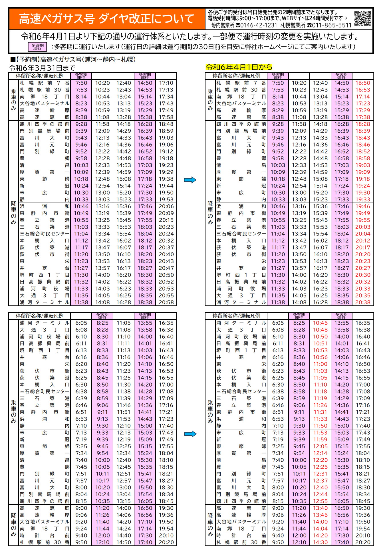 R6.4.1改正 高速ペガサス号時刻改正および札幌洞爺湖線の時刻・運賃改定について