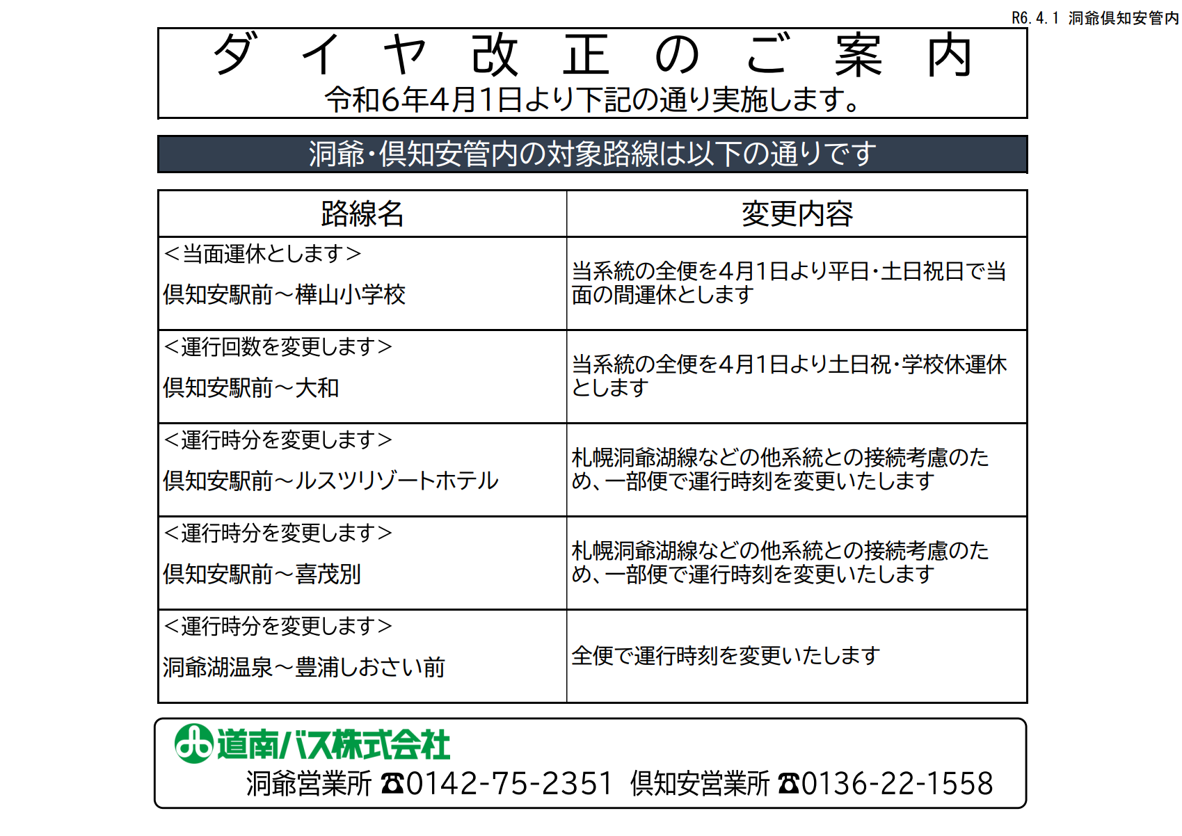 R6.4.1 胆振管内ダイヤ改正について