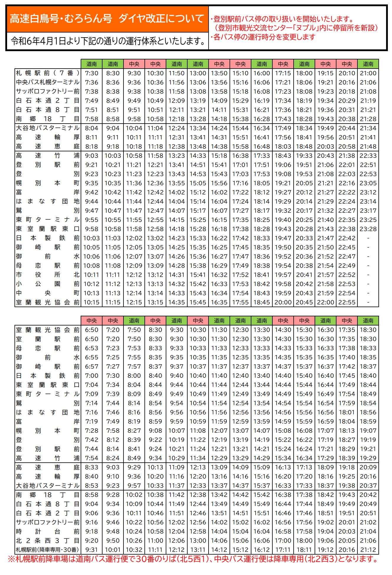 令和6年4月1日より、登別観光交流センター「ヌプル」内に停留所を新設し、登別駅前での取り扱いを開始します。