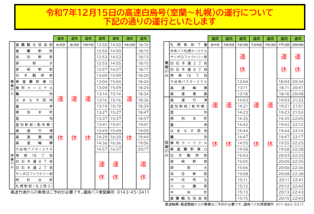 R7.12.15 高速白鳥号(室蘭~札幌)の運行について