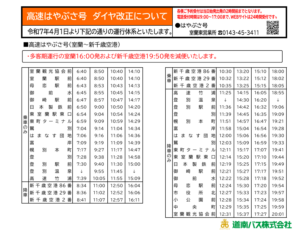 令和7年4月1日を改正日として、予約制都市間バスのダイヤ改正を実施いたします。